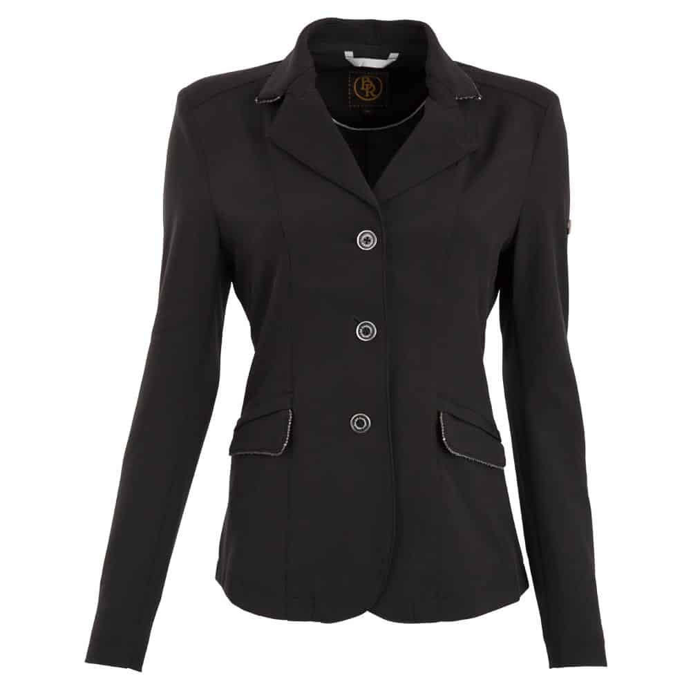Elegant sort stævnejakke i softshell, i virkelig god kvalitet, hvor der er kælet for detaljen.Kan anvendes både til spring og dressur og fås i blå eller sort.Denne elegante ridejakke er vandafvisende og med det lette og elastiske materiale giver det et ri