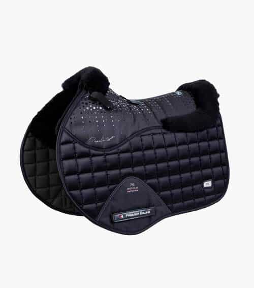 Premier Equine Capella spring sadelunderlag har yderstof i luksuriøst quiltet satin, der elegant glanser i lyset.