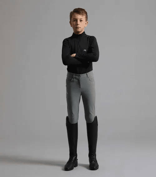 Premier Equine “Derby” drenge ridebukser er konstrueret af teknisk avancerede materialer for at tilbyde en smart stil, mens de