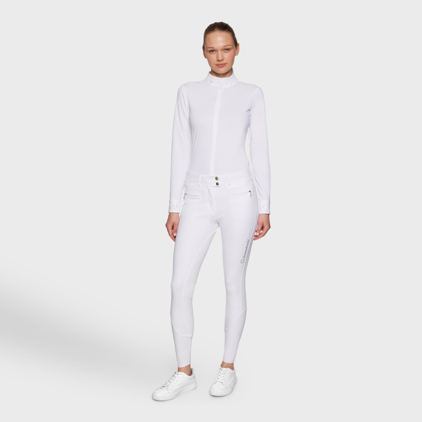 Clara ridebukser fra Samshield er ridebukser i høj kvalitet, flot design og super pasform. Disse ridebukser er lavet i 4-vejs stræk og vil forme sig efter kroppen. De er med fuld grip, hvilket giver god stabilitet og kontakt med sadlen. Denne model er høj
