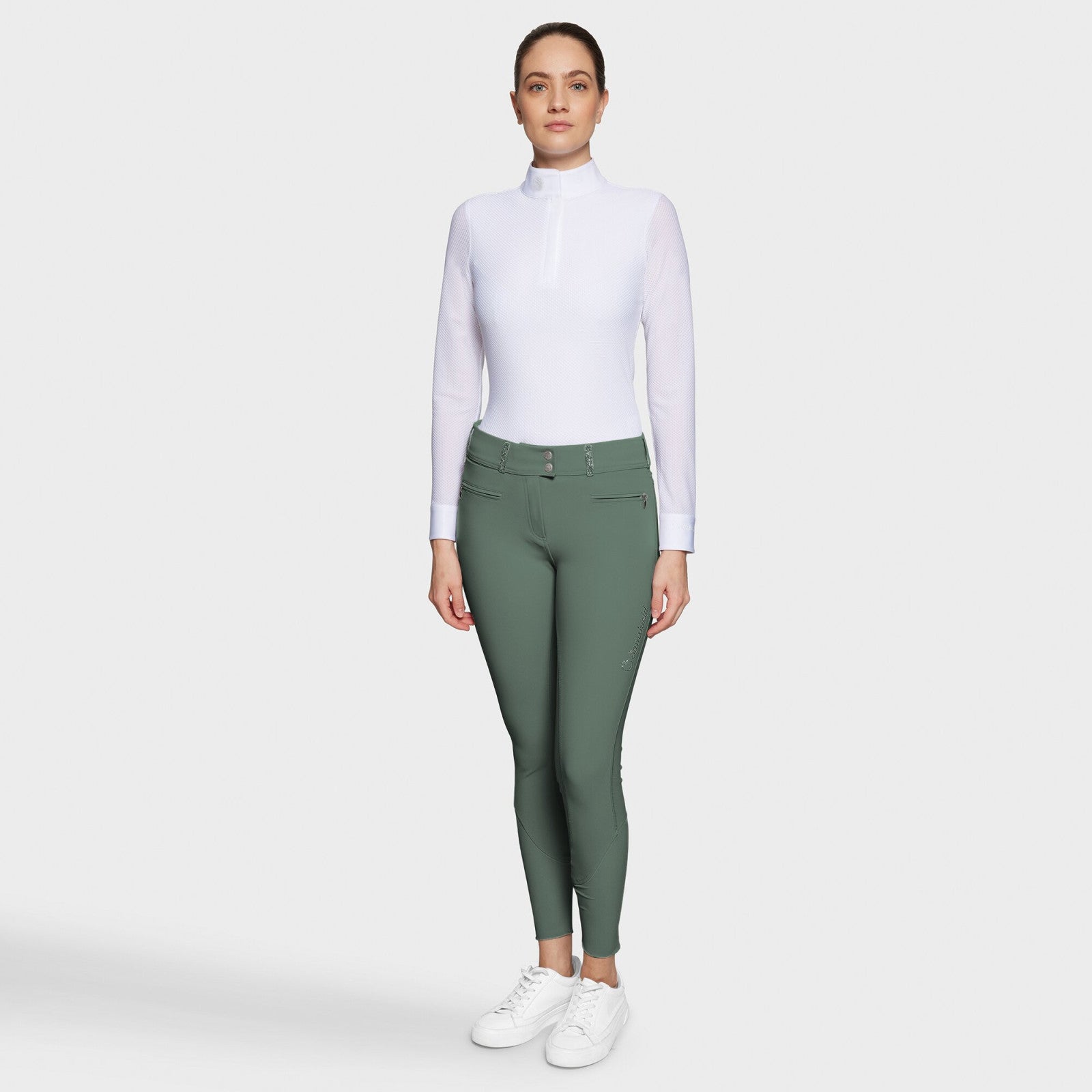 Clara ridebukser fra Samshield er ridebukser i høj kvalitet, flot design og super pasform. Disse ridebukser er lavet i 4-vejs stræk og vil forme sig efter kroppen. De er med fuld grip, hvilket giver god stabilitet og kontakt med sadlen. Denne model er høj