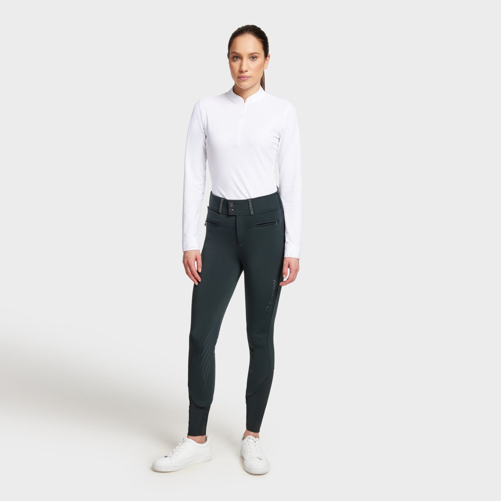 Samshield Claranova F-Grip ridebukser til damer i farven “Moonless Night” er designet med en kombination af høj ydeevne, komfort og moderne elegance. Disse ridebukser er ideelle til både daglig ridning, og de er skabt med avancerede materialer for at give