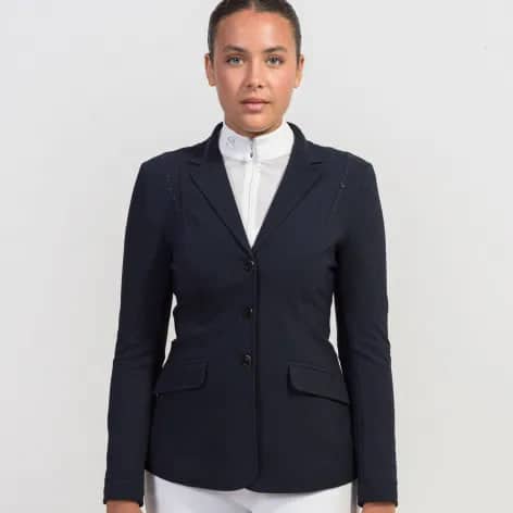 Virkelig flot stævnejakke fra Samshield, med flotte detaljer. Denne designet med et længere snit, der passer til højere ryttere og dem, der foretrækker større dækning, og har en fantastisk Swarovski-krystal- og metalprikdetalje, der grænser op til stretch