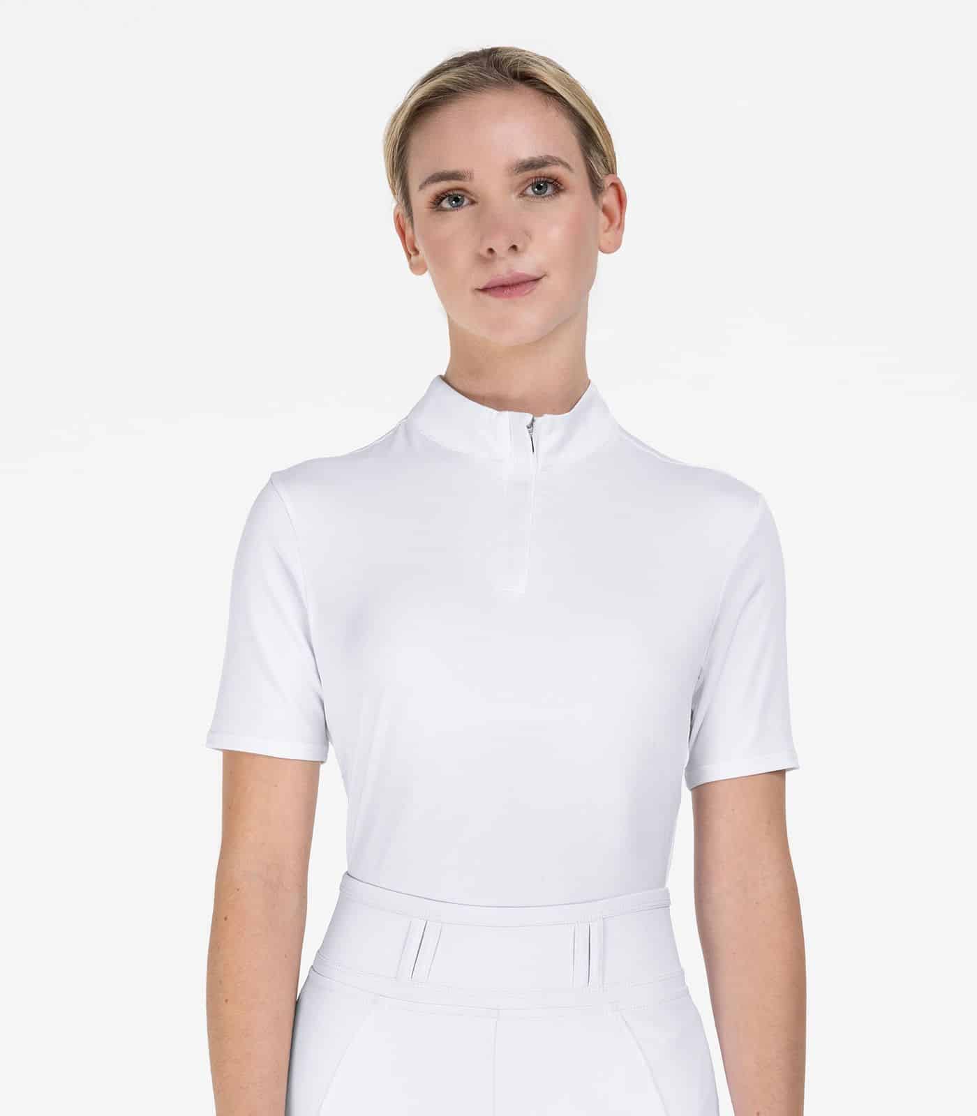 Waldhausen Basic stævnebluse er en elegant og funktionel kortærmet stævnebluse til rytteren, der ønsker både komfort og et stilrent udtryk på stævnebanen. Den er fremstillet i et teknisk, åndbart materiale, som sikrer optimal bevægelsesfrihed og komfort